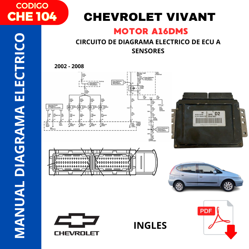 En este Manual de Diagrama en PDF descargrable podemos encontrar el circuito de conexión de cableado desde la bateria hasta la computadora del motor y todos sus sensores.