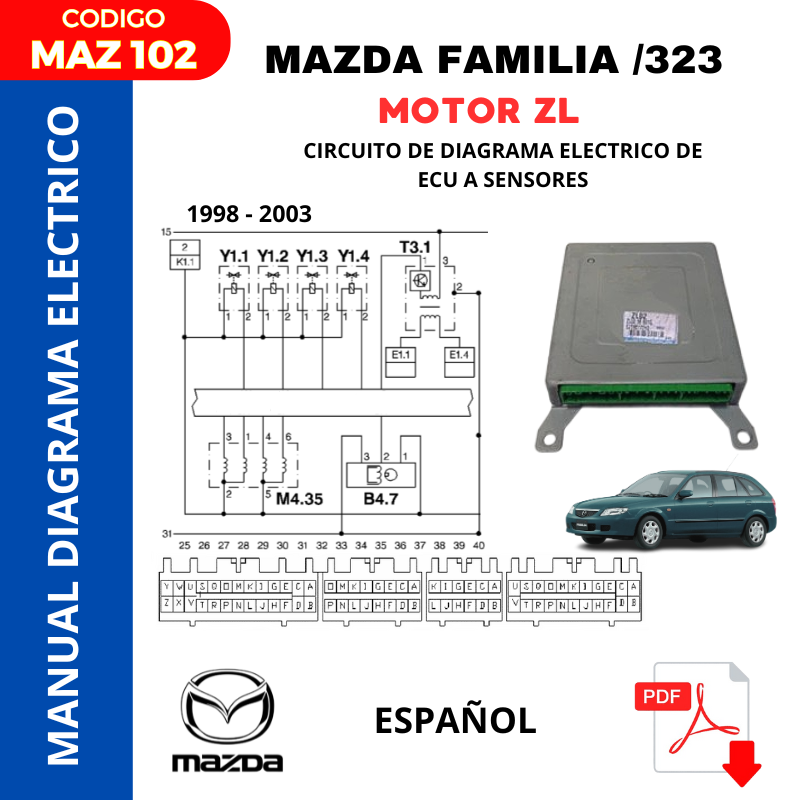 En este Manual de Diagrama en PDF descargrable podemos encontrar el circuito de conexión de cableado desde la bateria hasta la computadora del motor y todos sus sensores.